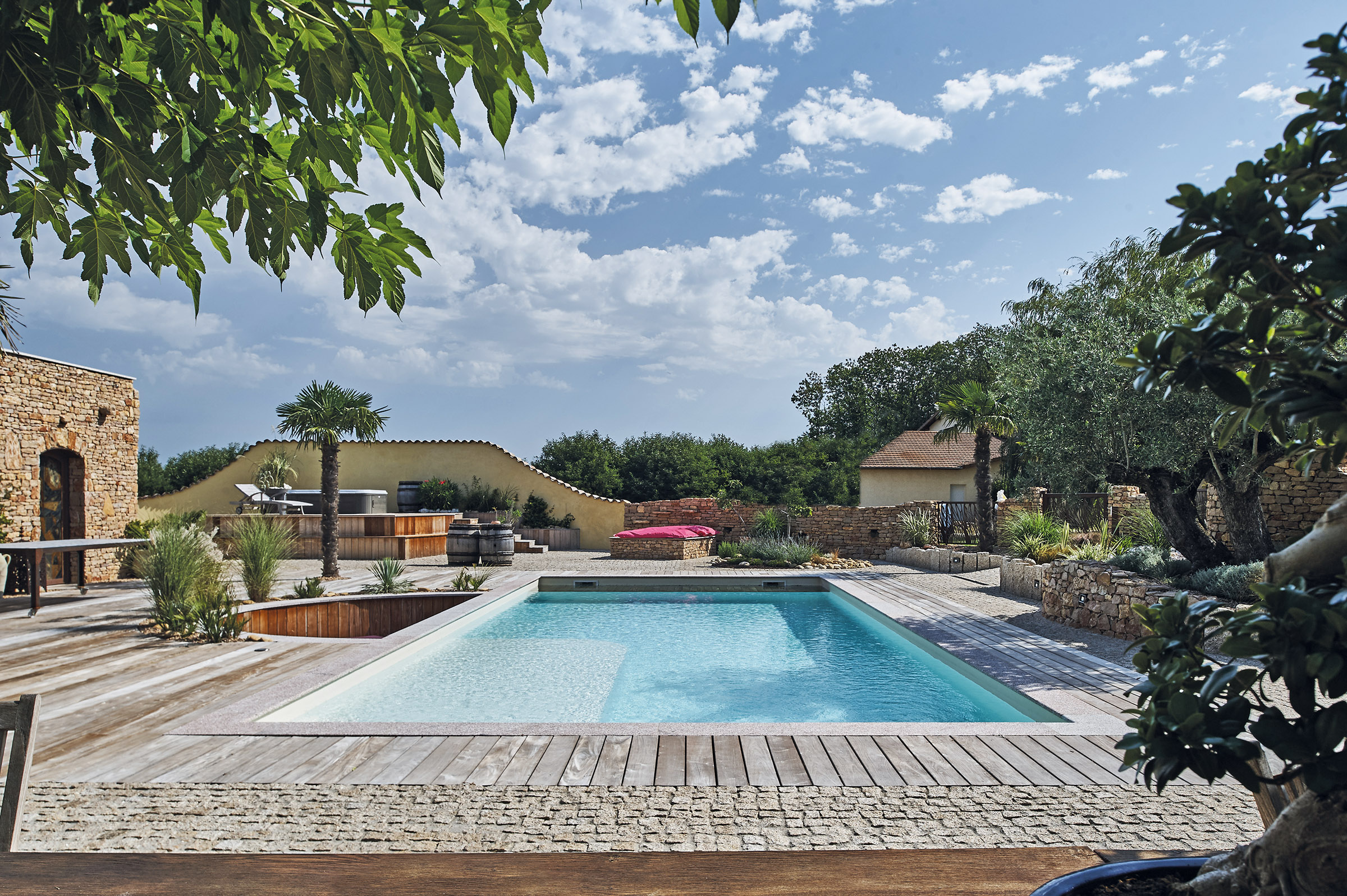 Le décor est inspiré des palmeraies marocaines. Entre les murets en pierre, l’ensemble de l’espace piscine a été savamment créé, point par point, avec patience et réflexion. Durant près de cinq longues années, le propriétaire, le piscinier et le paysagiste ont imaginé plusieurs dessins, affiné des choix, mûri des idées pour qu’émerge cette réalisation.