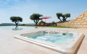 Se baigner toute l’année ou presque, dans une eau à bonne température dès le lever du jour, voilà le souhait émis par le propriétaire de cette piscine. Pour le satisfaire, le piscinier a prescrit un chauffage au gaz avec échangeur vers la chaudière et un hivernage actif trois à quatre mois dans l’année.
