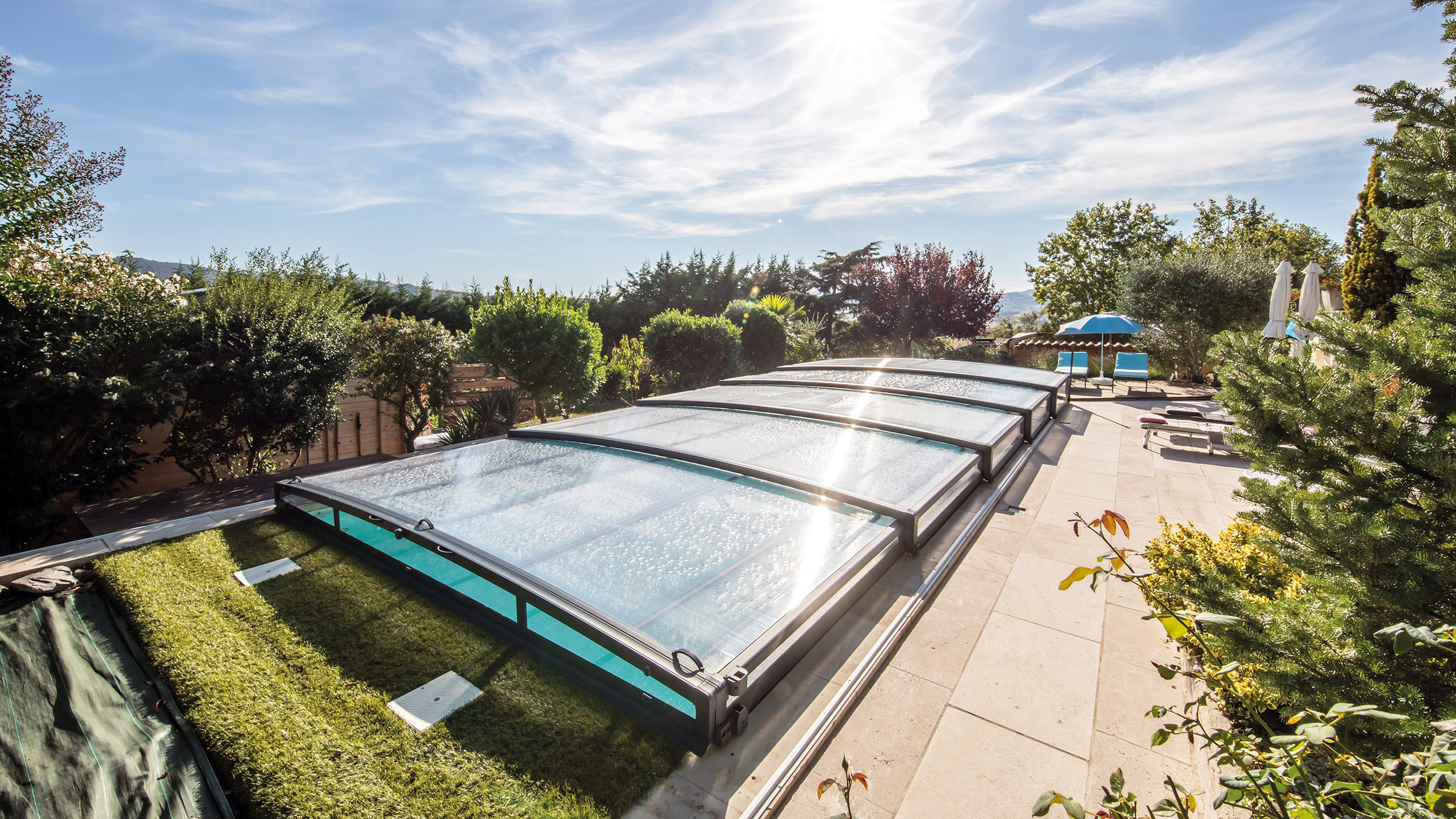 La nouvelle génération d’abris bas offre le confort de la baignade en mode fermé, à l’abri du vent, et en ouverture intégrale l’été. La baignade est prolongée près de 7 mois de l’année.
