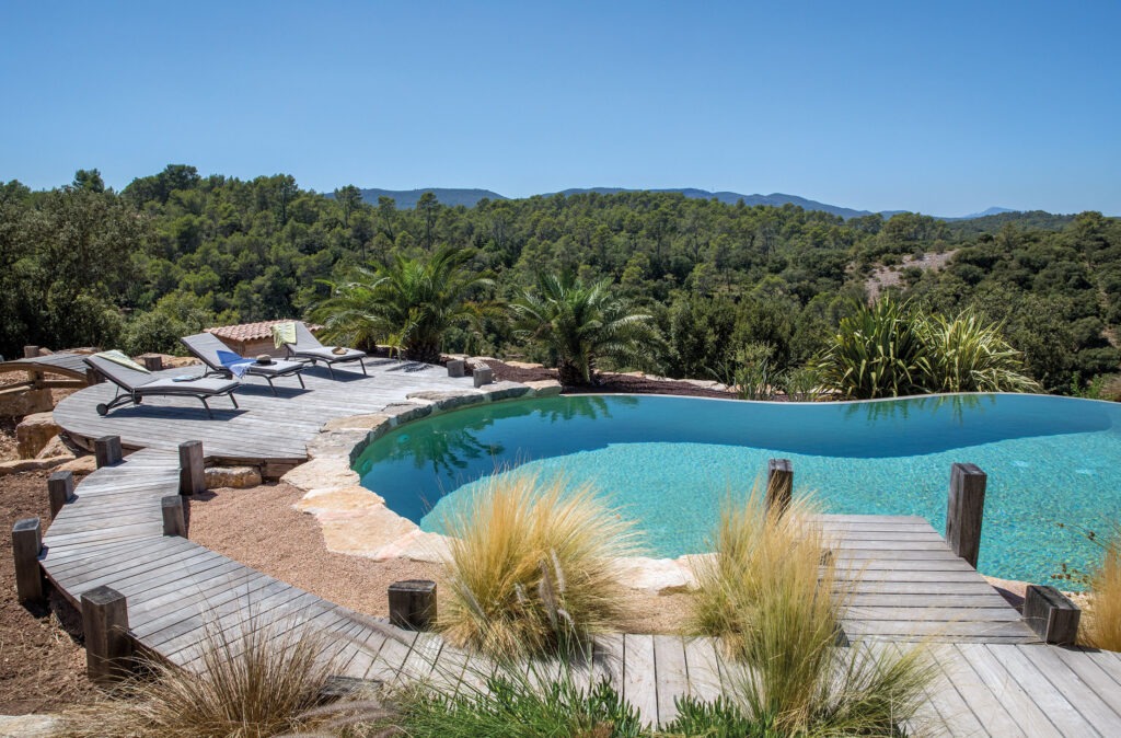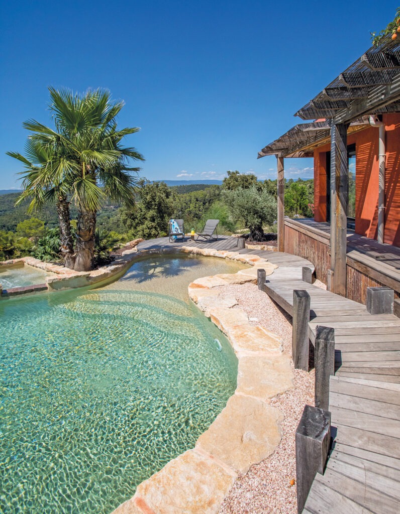 Deux choix possibles : effectuer le plus beau des plongeons via le ponton ou poursuivre en direction des bains de soleil et s’allonger pour une lecture au son des cigales.